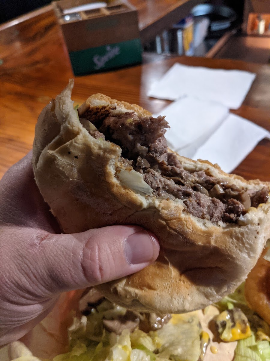 A really cool hole in the wall place to enjoy burgers! I ordered the moose burger with onion rings all for around 14-15 dollars and those patties were at least half a pound. The food was enjoyable and the owner/bartender was extremely friendly and nice and let us put a dollar bill on the wall. I live in the local area so I will come back for the bar!